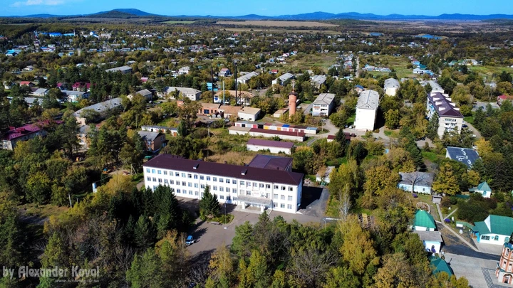 Центр посёлка Кировский с высоты птичьего полёта Больше новостей в Telegram @kirovskydv